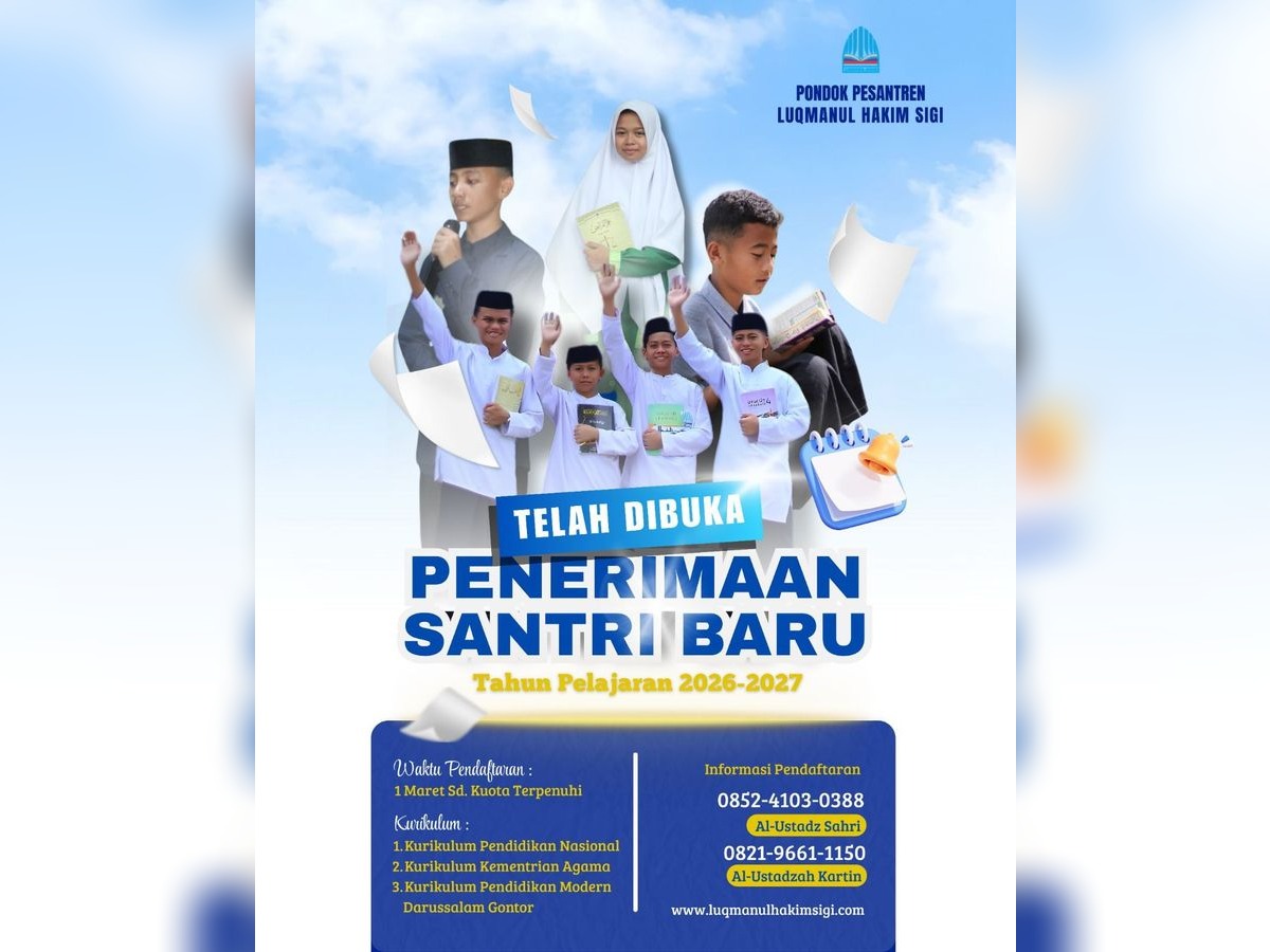 LQ NEWS – Sigi, 1 Maret 2026 – Kabar gembira bagi para orang tua dan calon santri. Pondok Pesantren Luqmanul Hakim resmi membuka pendaftaran santri baru untuk Tahun Ajaran 2026/2027 mulai hari ini. Pembukaan ini menjadi momentum penting bagi generasi muda yang ingin menempuh pendidikan agama dan umum dalam satu lingkungan yang terpadu.